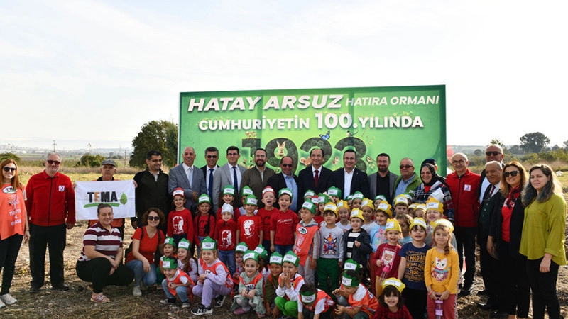 11 Kasım Milli Ağaçlandırma Günü dolayısıyla düzenlenen program, Mustafakemalpaşa Belediyesi, Mustafakemalpaşa Milli Eğitim Müdürlüğü ve Tema Vakfı işbirliği ile hazırlandı. Hatay Arsuz Hatıra Ormanı Tatkavaklı Mahallesi Toki Mevkiinde, Türkiye'nin iklim kriziyle mücadelesine ortak olmak ve kalıcı yeşil miras bırakmak amacıyla geleceğe nefes olacak.