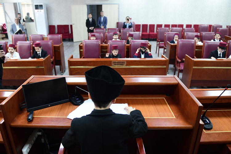 Kestel Belediye Başkanı Ferhat Erol, 23 Nisan Ulusal Egemenlik ve Çocuk Bayramı münasebetiyle Musa Amca İlkokulu öğrencileriyle bir araya geldi. Programda minikler, Türkiye Büyük Millet Meclisi’nin açılışını canlandırarak bayram coşkusunu meclis salonuna taşıdı.