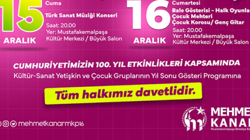 Yeteneklerini keşfetmek için Mustafakemalpaşa Belediyesi’nin kurslarına katılan yüzlerce kursiyer, yılsonu gösteri programı ile yeteneklerini sergileyecekler.