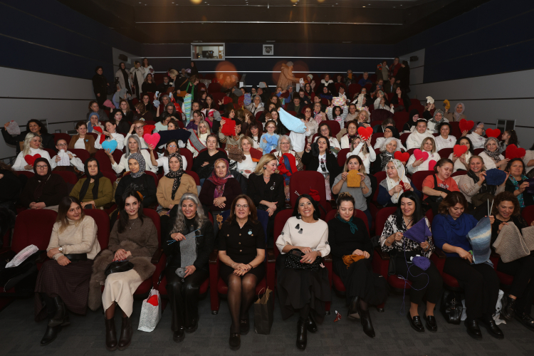 “Kalpten İlmekler İyilik Perdesinde” etkinliğinde 200 gönüllü kadın, film izlerken Harmancık’taki ihtiyaç sahibi çocuklar için atkı, bere ve yastık ördü. Nilüfer’de dayanışma ve sanat bir araya geldi.