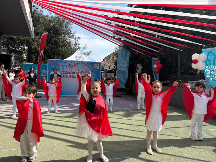 Nilüfer Belediyesi’ne bağlı kreşlerde düzenlenen 23 Nisan etkinliklerinde minik öğrenciler şarkılar ve danslarla bayram coşkusunu yaşadı. Etkinliklere katılan belediye yetkilileri, çocukların mutluluğuna ortak oldu.