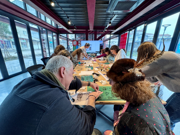 Şeffaf bant ve mürekkep kullanılarak yapılan çalışmalarda, malzemelerin sınırları zorlanarak katmanlı dokular elde edildi. Katılımcılar bu süreçte hem teorik bir tartışma ortamı buldu hem de malzemeyle doğrudan ilişki kurarak kendi üretimlerini gerçekleştirdi.