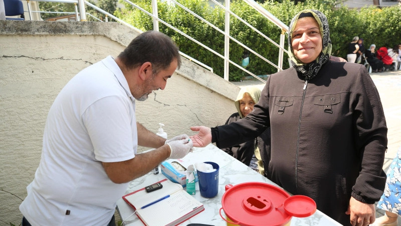 Kırsal mahallelere giden Nilüfer Belediyesi sağlık ekipleri, talep eden vatandaşlara tansiyon ve kan şekeri ölçümü yaparken, diyetisyen tarafından da sağlıklı beslenme tavsiyeleri veriliyor.