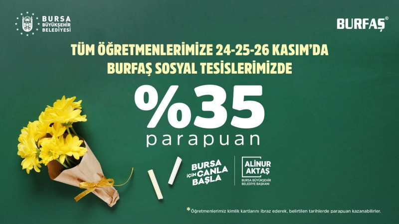 Yine aynı tarihlerde tüm öğretmenler Burfaş tesislerinde yaptıkları harcamalarda da yüzde 35 parapuan kazanacak.