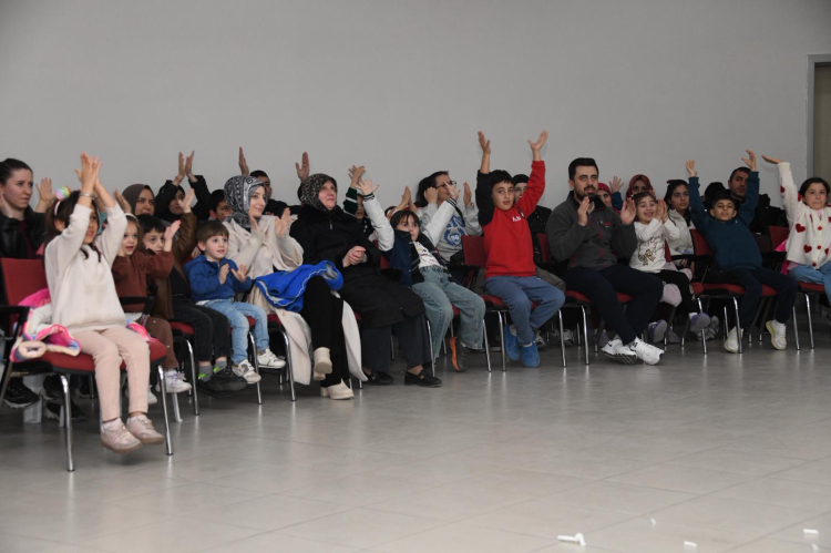 Salonun büyük bir bölümünü dolduran çocuklar, sahnede sergilenen birbirinden eğlenceli ve şaşırtıcı gösteriler karşısında büyük bir heyecan yaşadı. Sihirbazın sahnelediği renkli gösteriler, çocukların hayal dünyasını zenginleştirirken, salonda bulunan aileler de bu eğlenceli anlara ortak oldu.