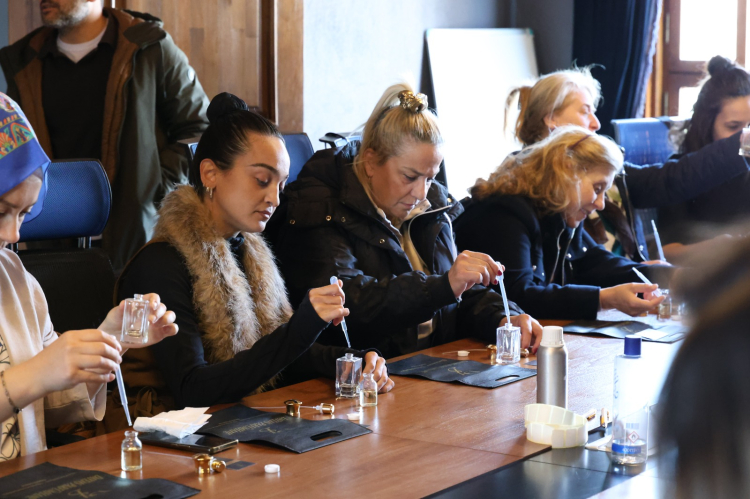 Teorik anlatımın ardından uygulama aşamasına geçen kursiyerler, öğrendiklerini pratiğe dökerek kalıcı hale getirdi. Kendi parfüm ve oda kokularını hazırlayan katılımcılar, doğru ölçüm tekniklerinden karışım sürelerine kadar birçok önemli detayı deneyimledi. Atölye sayesinde parfüm ve oda kokusu yapımını öğrenen kadınlar, bundan sonraki süreçte hem kendi ürünlerini üretebilecek hem de bu ürünleri satarak aile bütçelerine katkı sağlayabilecek.