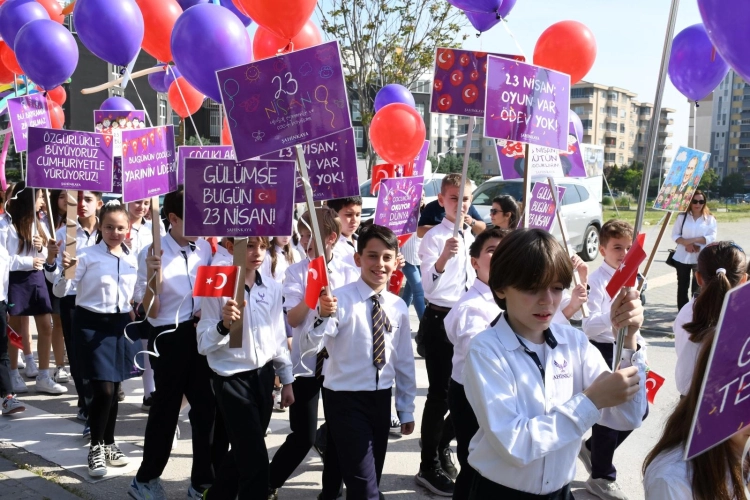 Şahinkaya Eğitim Kurumları öğrencileri 23 Nisan Ulusal Egemenlik ve Çocuk Bayramı’nı kortej yürüyüşünün ardından gerçekleştirdikleri tören ile coşku ve sevinç içinde kutladı.