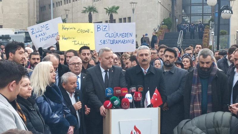 Bursa İl Başkanı Cihat Gazi'nin yaptığı açıklamada Genel Başkan Özdağ'ın tutuklanmasına tepki gösterildi. Kalabalık ellerinde 'Zulme karşı mukavemet', 'Bizi öldürmeden susturamazsın', 'Bebek katili Meclis'e, Ümit Özdağ cezaevine', 'Ümit tutuklu adalet tutsak' dövizleri taşıdı.