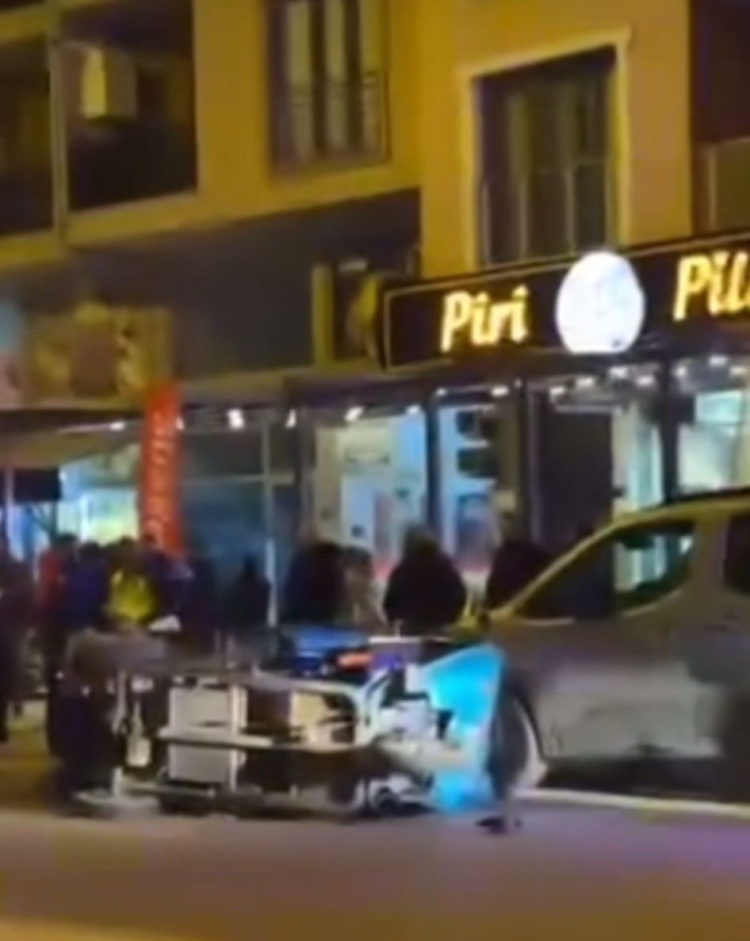 Kaza, Gürsu ilçesi 35'lik yol üzerinde meydana geldi. Cadde üzerinde ticari aracıyla ilerleyen bir sürücü, makas attığı esnada, karton toplamak için kullanılan seyir halindeki elektrikli araca çarptı. Park halindeki araçla makas atan araç arasında sıkışan araç, kazanın etkisiyle savrulurken sürücü hafif şekilde yaralandı. Kaza anı bir işyerine ait güvenlik kamerasına yansırken, makas atan sürücüye vatandaşlar tepki gösterdi