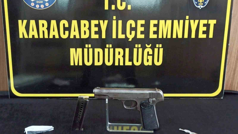 Araçta bulunan S.G.’nin (23) üzerinden tabanca ve şarjöre basılı 1 adet fişek ele geçirildi. Yine araçta bulunan M. K.’nın (29) üzerinden ağırlığı 0.90 gram olan metamfetamin maddesi, araç sürücüsü olan K.D.’nin (35) üzerinden ise ağırlığı 0.50 gram olan kenevir tohumu ele geçirildi.