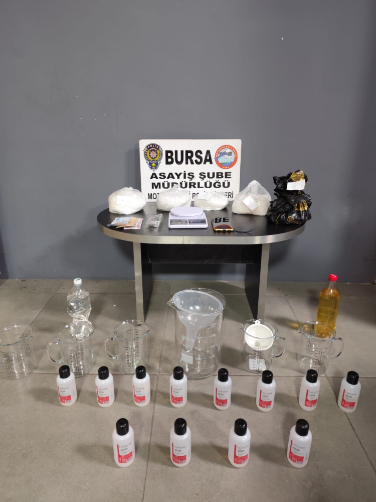 Bursa Asayiş Şube Müdürlüğü, Motosikletli Polis Timleri ekiplerince kentin farklı noktalarında huzur uygulamaları devam ederken, denetimlerin sürdüğü esnada bir taksiden şüphelendi. Taksiyi durduran ekipler, araçta müşteri olarak bulunan Salih R.'nin şüpheli hareketler yaptığını fark edince detaylı arama yapıldı. Şahsın takside bıraktığı poşeti inceleyen ekipler, poşette 672 gram uyuşturucu madde olduğunu tespit etti. Şahsın evinde arama yapmak isteyen ekipler, Cumhuriyet Başsavcılığı koordinesinde Salih R.'nin Yıldırım ilçesi Yunusemre Mahallesi'ndeki adresine de baskın yaptı. Evde arama yapan polis, içeride parça parça toplam 2.5 kilo uyuşturucu madde ele geçirdi.