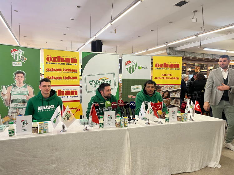 Bursaspor Yörsan Basketbol Takımı’nın kaptanı Ömer Utku Al, David Mutaf ve Donte Grantham Geçit’te bulunan Özhan Market şubesinde hayranlarıyla bir araya geldi. Özhan Marketler Zinciri ve Yörsan iş birliğiyle gerçekleşen etkinlikte, oyuncular taraftarlarla sohbet edip hatıra fotoğrafları çektirdiler.