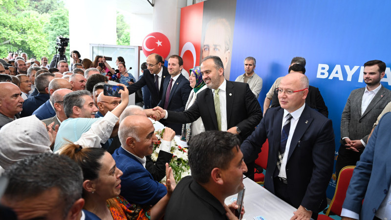 AK Parti İl Başkanlığı tarafından Atatürk Kongre ve Kültür Merkezi’nde düzenlenen bayramlaşma töreninde konuşan Bursa Büyükşehir Belediye Başkanı Alinur Aktaş, bayramların birliğin, beraberliğin, kardeşliğin, paylaşmanın en çok hissedildiği günler olduğunu hatırlatarak, bayramın bu duygularla dolu dolu yaşanmasını diledi. Türkiye’nin daha yeni seçim sürecinden çıktığını, ancak 9 ay sonra yerel seçimlerin yapılacağını kaydeden Başkan Aktaş, “Bu tip toplantılarda proje anlatan biri değilim. Ancak ‘neden projeleri anlatmıyorsun’ diye bazı serzenişler oluyordu. Bugüne kadar yapılanlar bir kenara bugünden sonra açılacak 40-50 tane projemiz var. Hepsi farklı ilçelerimizde. Kimisi gençlerle, kadınlara ilgili, kimisi ekonomi, sosyal hayat ve ulaşımla ilgili. Temmuz ayı itibariyle yoğun açılışlara başlıyoruz. 9 ay sonra yapılacak yerel seçimde Rabbim inşallah bizleri mahcup etmesin. Bana verilen unvan ne olursa olsun Allah'ın izniyle bu bayrağı aynen 14 Mayıs'ta ve 28 Mayıs'ta olduğu gibi en yukarılara dikmek adına el birliğiyle, gayretle mücadele edeceğimi özellikle ifade etmek istiyorum” dedi.