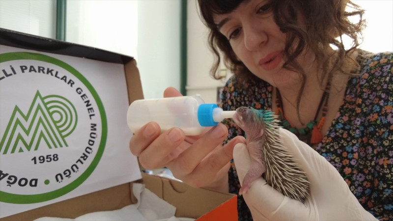 Biberon ile beslenen kirpinin sağlık durumunun iyi olduğunu ifade eden Veteriner Hekim Nihal Bilgici Yıldız ise, “Özellikle bu zamanlarda çim biçerken, çimlerin arasına gizlenen bu kirpi ailelerine dikkat edilmelidir. Çim biçme makineleriyle verilen hasarlar geri dönülmez oluyor” dedi.