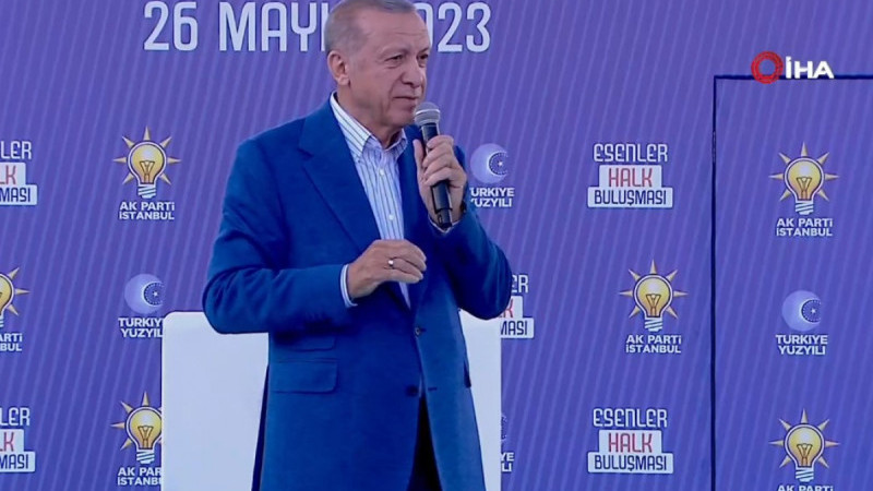 "Bu meydanda dosta güven ülkelerimizin hasımlarına korku salan dirayetli bir duruş var. Şu coşkuyu görüp de duygulanmamak mümkün mü? Rabbim yol arkadaşlığımızı daim eylesin. 7 Mayıs Atatürk Havalimanı Millet Bahçesi'nde tarihe geçen bir miting yapmıştık. 1 milyon 700 bin kardeşimiz toplanmıştı. Tabii bu birilerine korku vermiştik. Yüzde 90'la 14 Mayıs'ta dünyaya demokrasi örneği verdik. Dünyada böyle bir şey bulamazsınız. Dünyada yüzde 30-40. Esenler milletvekilliği seçiminde İstanbul'da birinci oldu. Cumhurbaşkanlığında da Avrupa Yakası'nın birincisi oldu."