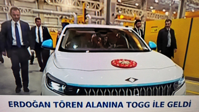 Cumhurbaşkanı Erdoğan tören alanına yine yerli ve milli üretimimiz olan TOGG aracı kullanarak geldi.