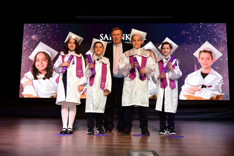Şahinkaya Eğitim Kurumları’nda mezuniyet heyecanı, ilkokuldan ortaokula geçiş yapan 4. sınıf öğrencileriyle başladı. Academy Kampüs sahnesinde düzenlenen törende minik öğrenciler, ilkokul yıllarına veda etmenin gururunu ve ortaokula adım atmanın heyecanını bir arada yaşadı. Törende öğrenciler, diplomalarını Şahinkaya Eğitim Kurumları Onursal Başkanı Rasim Şahinkaya ile kıymetli öğretmenlerinin ellerinden aldılar. Törenin en unutulmaz anlarından biri ise çocukların keplerini hep birlikte havaya fırlatarak “ortaokula merhaba” demeleri oldu.