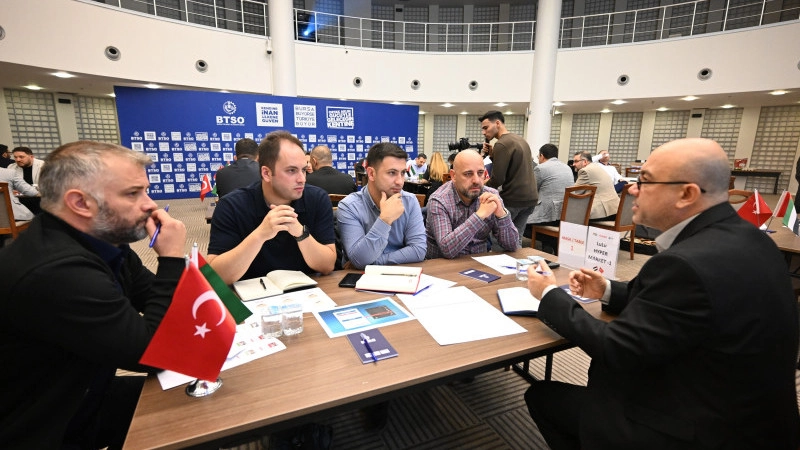 BTSO, ihracat odaklı faaliyetlerini aralıksız sürdürüyor. BAE Ankara Büyükelçiliği tarafından oluşturulan Gıda Sektörü Alım Heyeti, Bursa’da düzenlenen ikili iş görüşmeleri etkinliğinde BTSO üyeleri ile bir araya geldi. BAE Ankara Büyükelçisi Saeed Thani Hareb Al Dhaheri ve BAE Franchise Derneği Yönetim Kurulu Başkanı Noor Altamimi’nin de eşlik ettiği ticaret heyetini, BTSO Yönetim Kurulu Başkan Yardımcısı Cüneyt Şener ve Meclis Başkan Yardımcısı Murat Bayizit ile Gıda ve Paketli Ürünler Konseyi Başkanı Burhan Sayılgan karşıladı. Gün boyu devam eden etkinlikte, Bursalı firmalar yoğun görüşmeler gerçekleştirirken, yeni iş birliklerinin de temelleri atıldı.