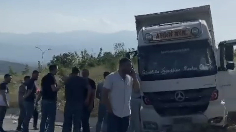 Freni patlayan kamyon yoldan çıktı: 1 yaralı