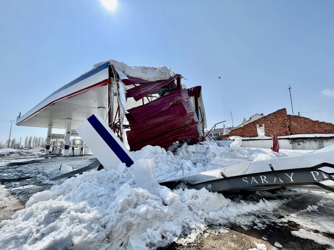 Ağrı'da akaryakıt istasyonunun çatısı çöktü