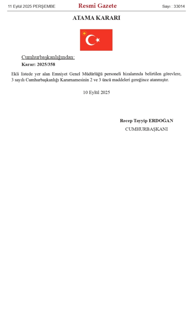 Cumhurbaşkanlığı tarafından yapılan atama kararları Resmi Gazete’de yayımlandı. Karara göre, 37 ilin Emniyet Müdürü değişti.