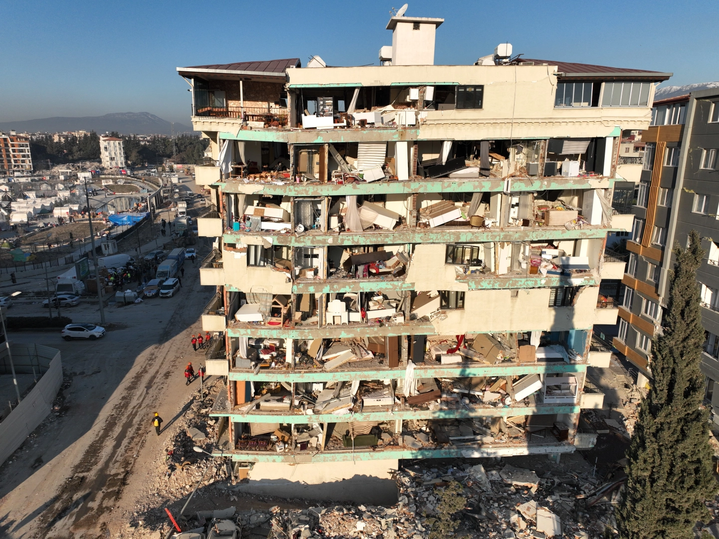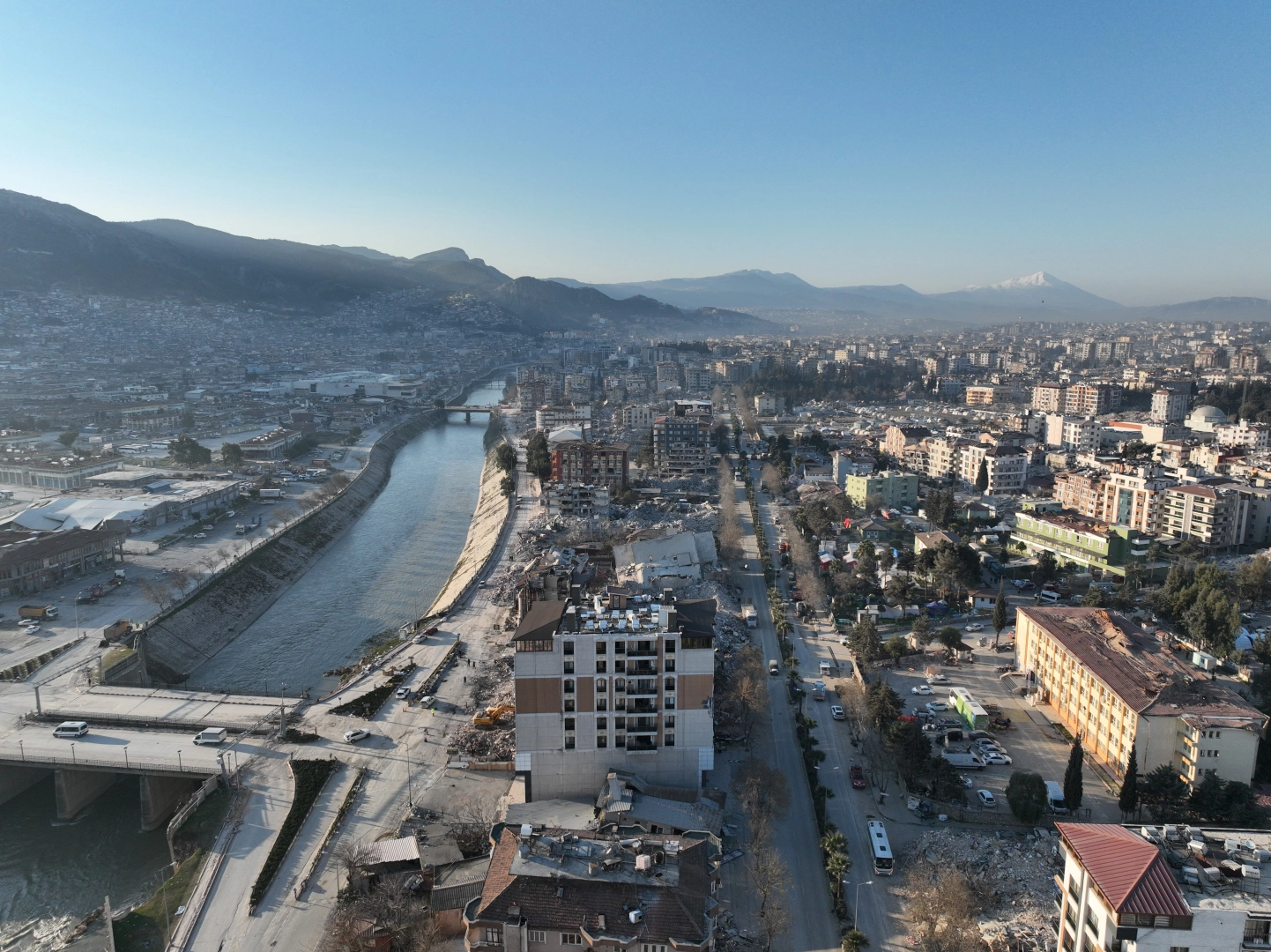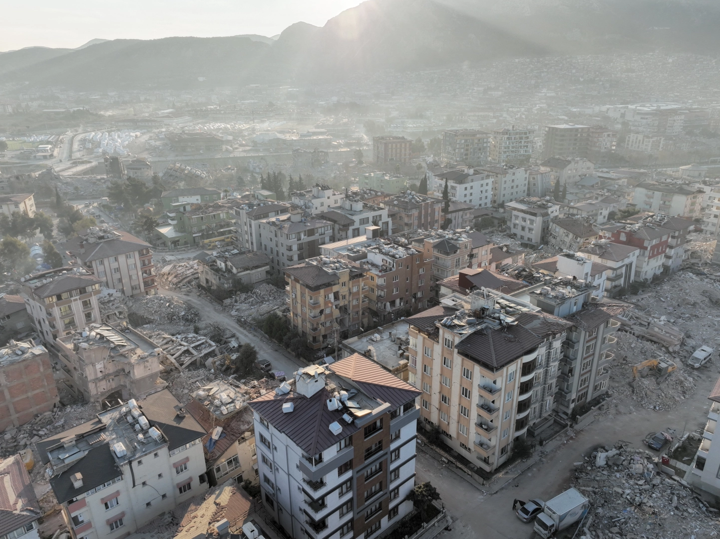 Kahramanmaraş merkezli iki büyük deprem 10 ili vurmuştu. Bu illerden biri de Hatay olmuştu. Çok sayıda binanın yıkıldığı kentte arama kurtarma çalışmalarında çok sayıda vatandaş enkazdan yaralı olarak kurtarılmıştı. Afetin 9. gününde güneş doğarken kentteki yıkımın şiddeti dron kamerasıyla görüntülendi. Binaların tamamıyla yıkıldığı bölgede vatandaşları AFAD'ın kurduğu çadırlar da kaldığı görüldü. Kent merkezinde bulunun bir enkazda ise arama kurtarma çalışmaları sürdürülüyor. Kent çevresinde geniş güvenlik önlemleri alan jandarma ve polis ekipleri, asayiş olaylarına karşı hazırda bekletiliyor.