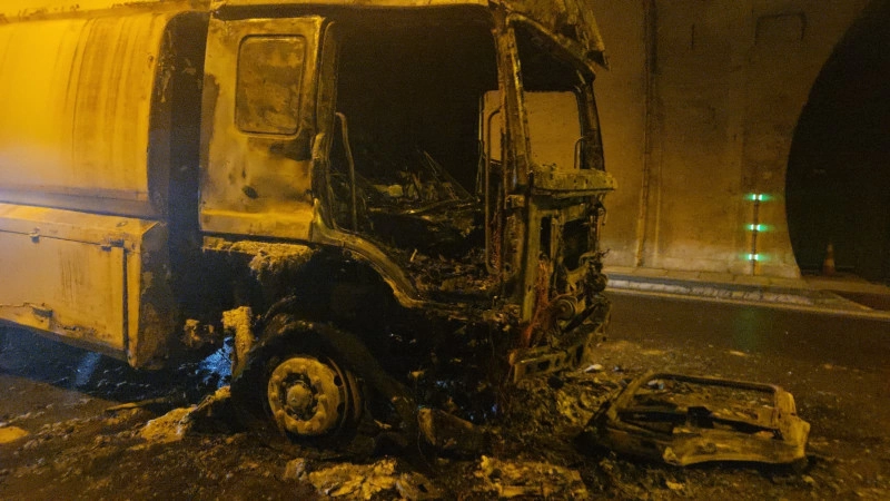 Su tankeri tünelin içinde alev alev yandı...