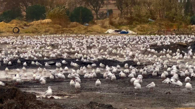 İstanbul’da etkili olan şiddetli lodos kuşları da vurdu. Şiddetli lodos nedeniyle uçamayan yüzlerce martı Kazlıçeşme’de boş bir araziye sığındı.