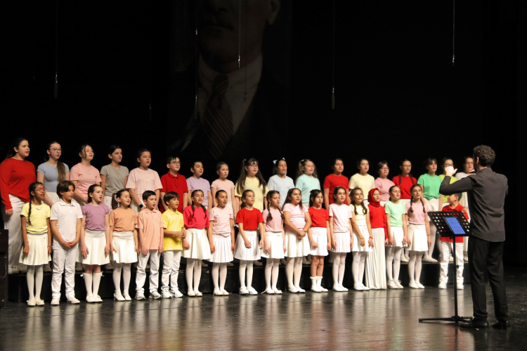 Çocuk Senfoni Orkestrası ve koroların sahne aldığı konserde minikler, sergiledikleri başarılı performansla izleyenlere unutulmaz bir bayram akşamı yaşattı.