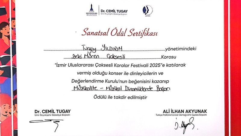 Festivalde sahne alan Zeki Müren GSL Korosu, sanatsal yorumları, güçlü sahne enerjisi ve yüksek müzikalitesiyle izleyicilerden tam not aldı. Koro, performansıyla yalnızca dinleyicilerin değil, festival jürisinin de dikkatini çekerek organizasyonun en prestijli ödüllerinden biri olan Müzikate - Müzikal Dinamiklerde Başarı Ödülü'ne layık görüldü. Festival kapsamında basın mensuplarına açıklamalarda bulunan Koro Şefi Turgay Yıldırım, bu yıl festivale dördüncü kez katıldıklarını belirterek, "Böylesine köklü ve uluslararası düzeyde değerli bir organizasyonda sahne almak bizim için büyük gurur. Genç koristlerimizin emeği ve disiplini sayesinde bu başarıya ulaştık. Emeği geçen tüm öğrencilerime ve destek veren herkese teşekkür ediyorum" dedi. Sanatseverlerin yoğun ilgi gösterdiği festival, bu yıl da farklı ülkelerden gelen koro topluluklarının kültürel ve sanatsal paylaşımına ev sahipliği yaptı. Zeki Müren GSL Korosu'nun ödüllü performansı ise festivalin unutulmaz anlarından biri olarak hafızalarda yer etti.