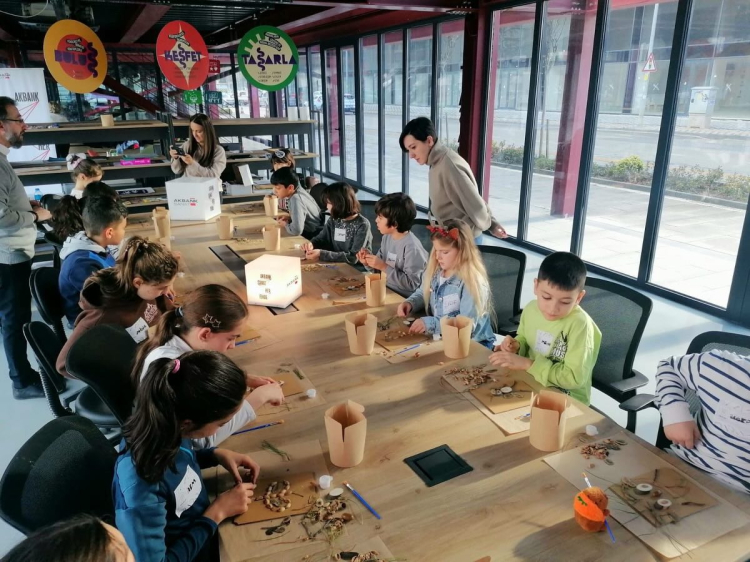 Günün ikinci etkinliği olan “Dönüşüm” temalı atölyede ise odak noktası edebiyat ve doğa gözlemi oldu. Franz Kafka’nın Dönüşüm romanından esinlenilerek hazırlanan içerikte çocuklar, böceklerin ve küçük canlıların dünyasını mercek altına aldı. Makro fotoğraflar üzerinden canlıların renk, desen ve biçimlerini detaylıca inceleyen katılımcılar, bu gözlemlerden yola çıkarak kendi hayali böceklerini tasarladı.