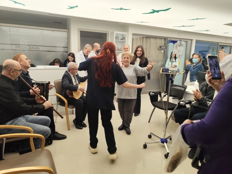 Bursa'daki hastanenin onkoloji bölümünde kanserle mücadele eden ve kanseri yenen hastalar, Kanser Haftası'nın yaklaşması nedeniyle doktorlarıyla birlikte bir motivasyon etkinliğine imza attı. Türk sanat ve halk müziği parçalarını dinleyerek ve hareketli parçalara dans ederek eşlik eden hastalar unutulmaz hatıralar biriktirdi.
