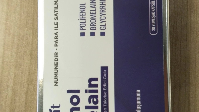 İçerik: Polifenol, Bromelain, Glycyrrhiza glabra (Meyan kökü), B12 Vitamini.