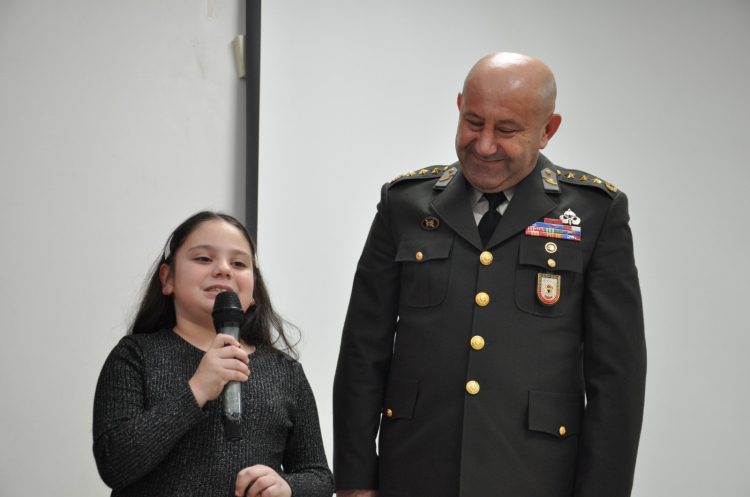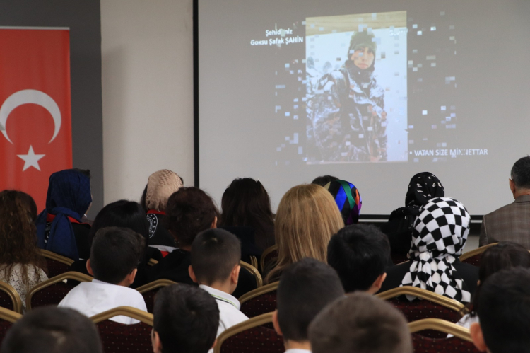 Daha sonra söz alan Şehit Göksu Şafak Şahin’in program boyunca ilgi odağı olan kızı Reyhan Öykü Şahin de program dolayısıyla teşekkürlerini iletti. Konuşmaların ardından okul öğrencileri şehidin biyografisini okudu.