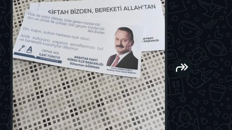 Anahtar Parti Gürsu İlçe Başkanlığı, önceki akşam saat sonra ilçenin cadde ve sokaklarında faaliyet gösteren esnafların kapalı olan düükan kapılarının altından zarf içerisinde siftah parası dağıttı.