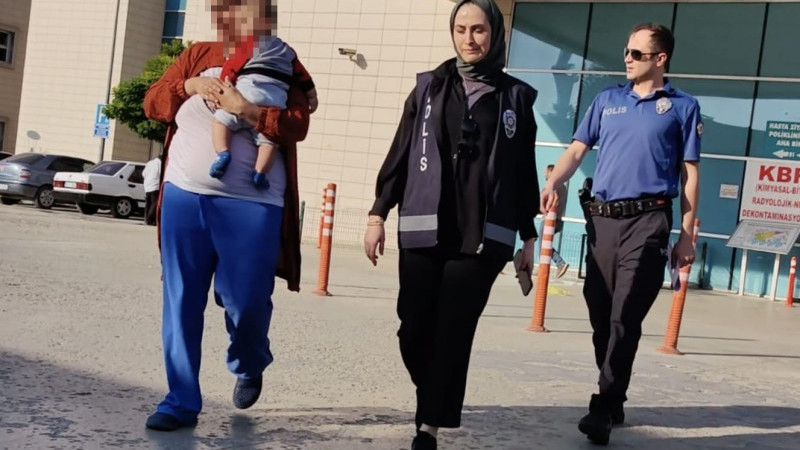 Kadın, kucağında 6 aylık bebeğiyle cezaevine götürüldü.