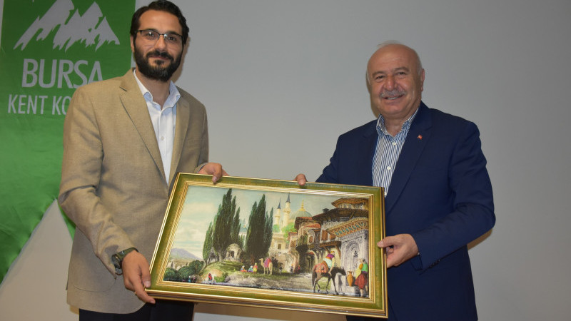 Bursa Kent Konseyi Başkanı Şevket Orhan da panelin ardından günün anısına Kültür ve Turizm Bakanlığı, Kültür Varlıkları ve Müzeler Genel Müdür Yardımcısı Dr. Yahya Coşkun’a tablo hediye etti.