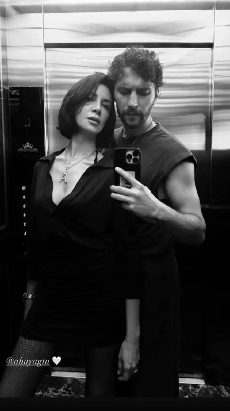 Aralarındaki 12 yaş farkla konuşulan ünlü çift, asansörde çektirdikleri samimi fotoğrafı sosyal medyada paylaştı. Ahu Yağtu’nun beyaz kalp emojisiyle yayınladığı kare kısa sürede ilgi odağı oldu.