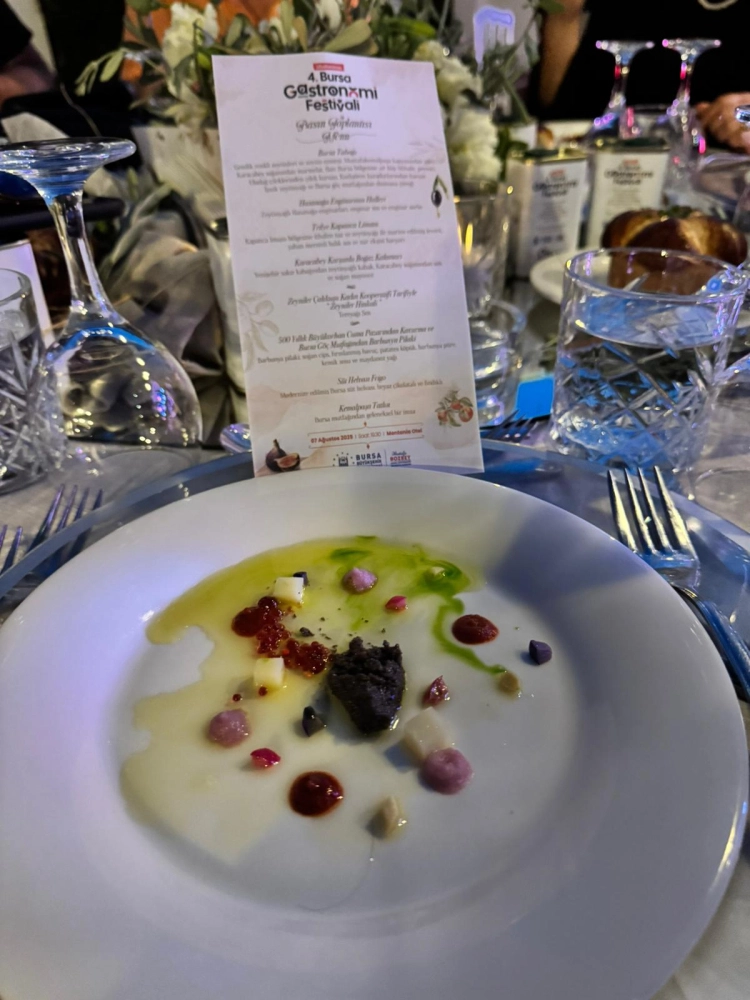 Bu arada Şef Atakan Özen ve ekibinin hazırladığı Bursa’ya ait özgün yemeklerin yeniden yorumlandığı ikramlık menü de oldukça etkileyici idi. Örneğin Hasanağa enginarı, sos ve sorbe ile, 500 yıllık Büyükorhan kavurması Bursa göç mutfağının meşhur barbunya pilakisi ile bizim sıcak süt helvamız da beyaz çikolata ve böğürtlenle dondurulmuş olarak servis edildi.