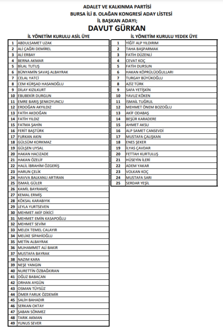 Yeni isimler içinde bende de hatırları bulunan ve il başkanına büyük katkı koyacaklarına hiç şüphem olmayan Osmangazi eski Belediye Başkan Yardımcısı Cem Kürşad Hasanoğlu, eski il yöneticisi Şaban Sönmez, AK Parti’nin kurucularından iş insanı Ferit Baştürk ile BTSO Basın Danışmanı ve Gazeteci Osman Tüysüz dikkat çekerken, kadın sayısının 10’da kalması da üzücü. Çünkü siyasette nitelikli kadınlarımızın azlığı sadece AK Parti için değil diğer partiler için de büyük sorun.
