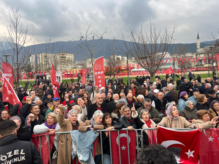 Gelmeseymiş daha iyi… Alandaki insan topluluğu 2 yıl önce Bursa Büyükşehir ile 5 ilçe belediyeyi kazanan ana muhalefet partisi CHP Genel Başkanı Özel’e hiç yakışmadı.